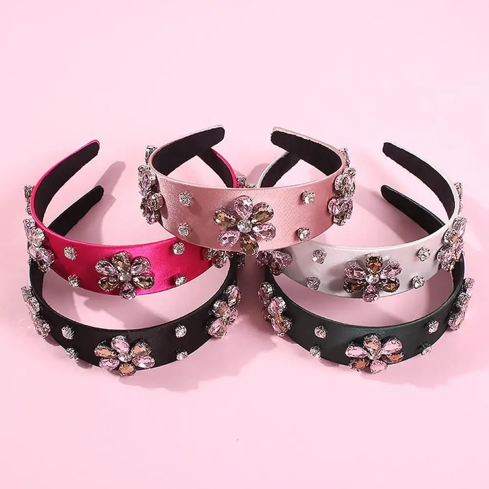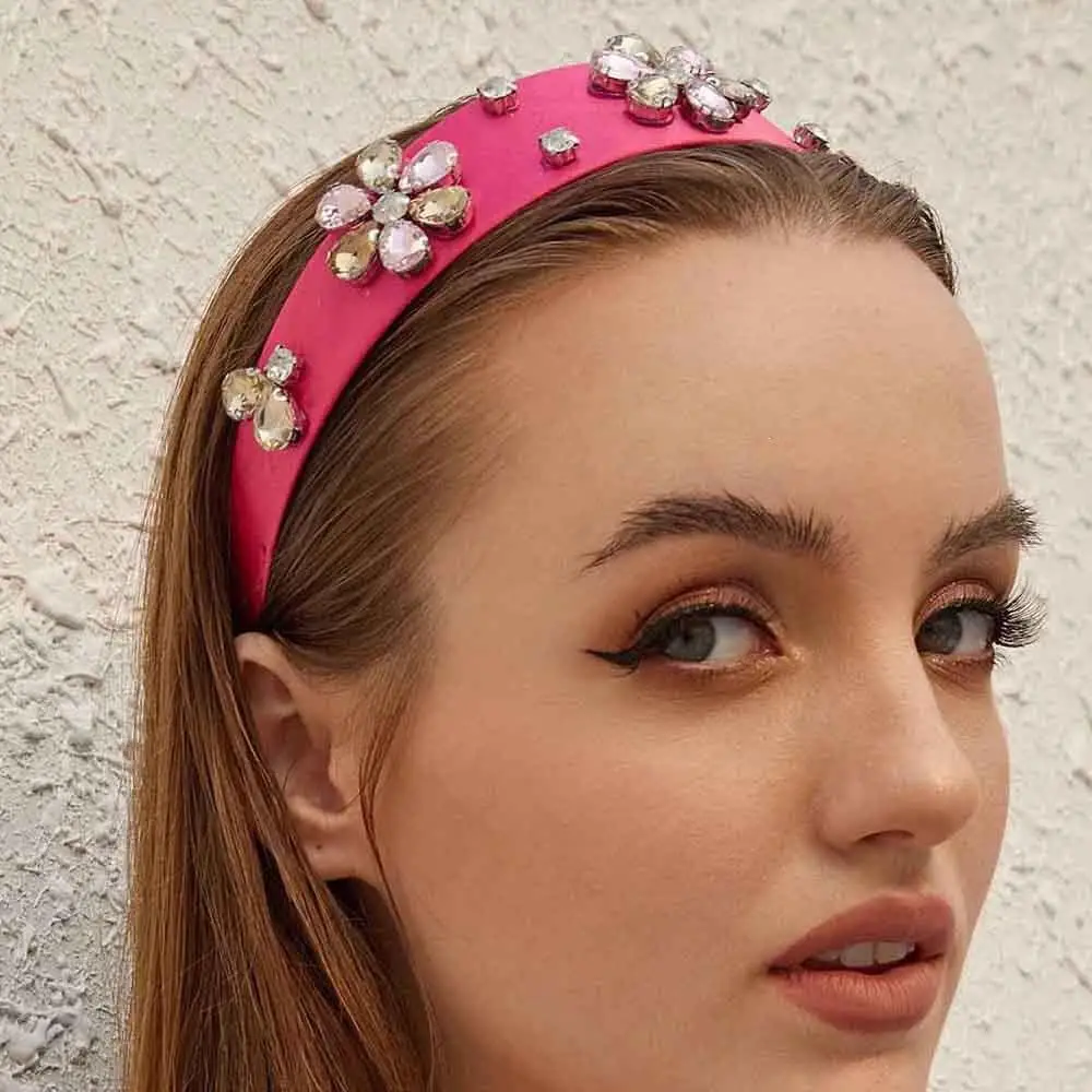 Women Hairband Rhinestone Handmade Hair Bands Red Crystal Wide Hoop Headband Wedding Hair Jewelry