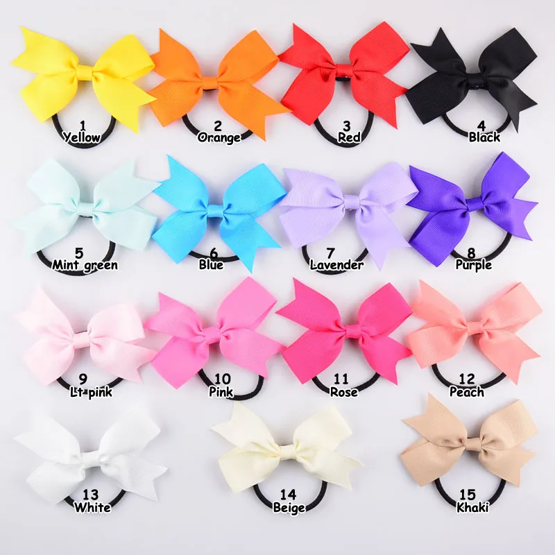 10pcs/Lot 9-9.5CM Ribbed ribbon Fabric Knot Bow Sticker Decorated Girls Hair Jewelry Elastic bands