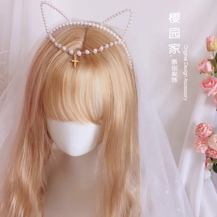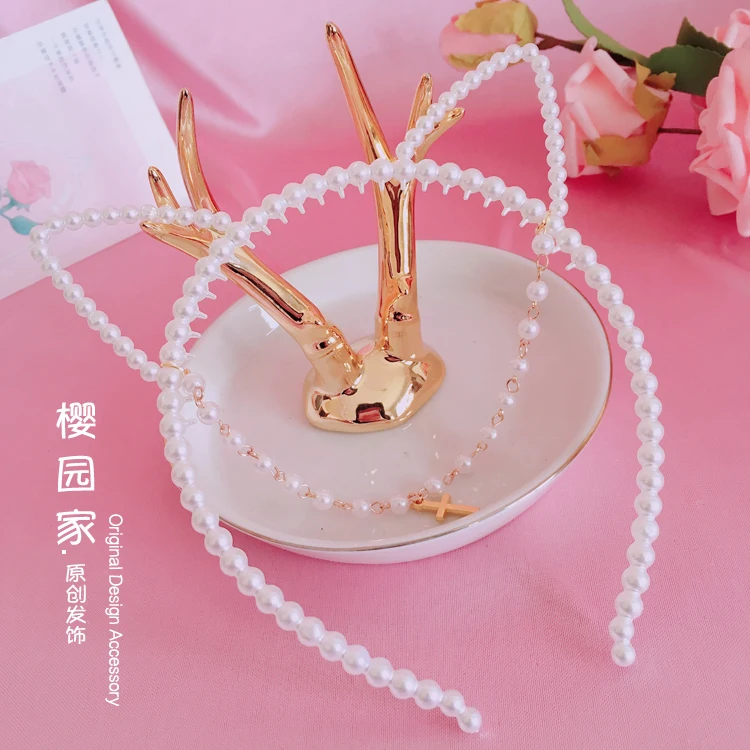 ORIGINAL Japanese Soft sister Teenage heart Pearl Cat Ears Hair Hoop Hair Accessories Cute Lolita Sweet Pear