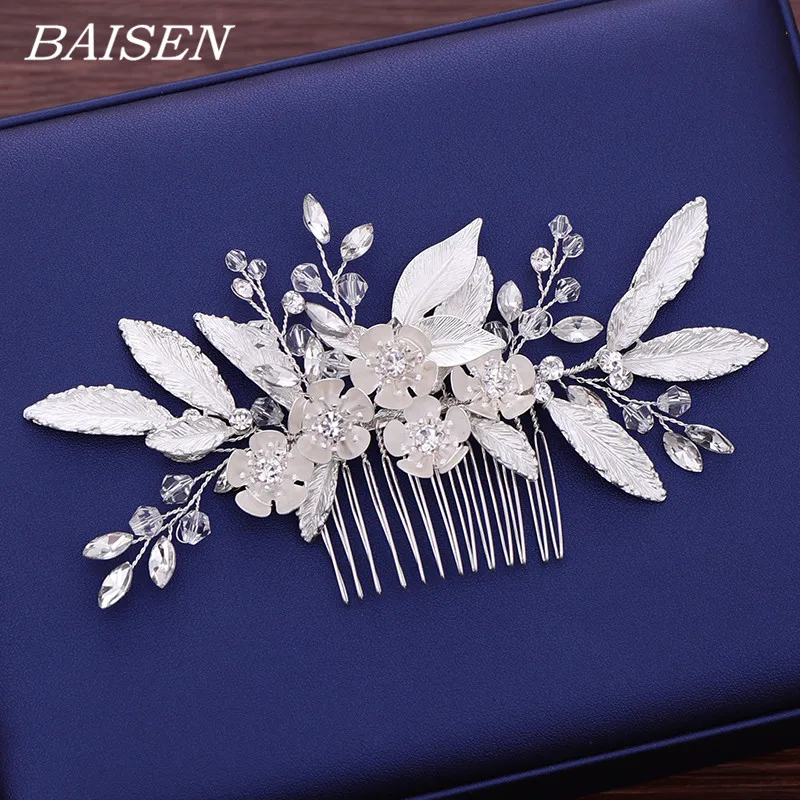BEST Silver Leaf Flower Hair Jewelry Women Hair Comb Bride Hair Accessories Wedding Hair Comb Accessorie