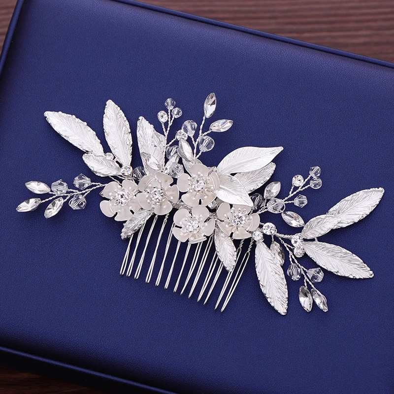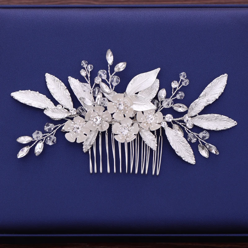 Silver Leaf Flower Hair Jewelry Women Hair Comb Bride Hair Accessories Wedding Hair Comb Accessorie