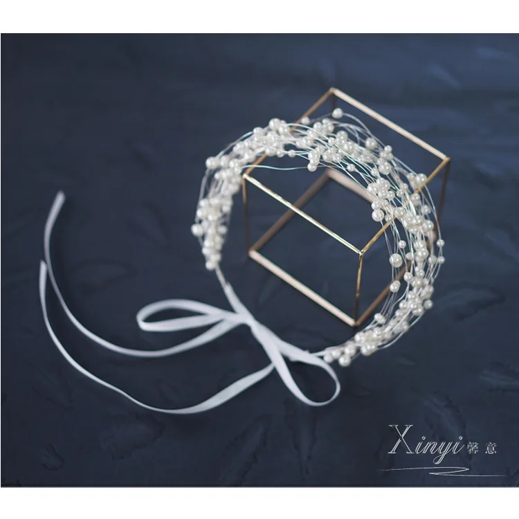 Bridal Tiara Pearl Wedding Crown Bride Hair Piece Headpiece for Wedding Bridal Hair Vine Hair Halo